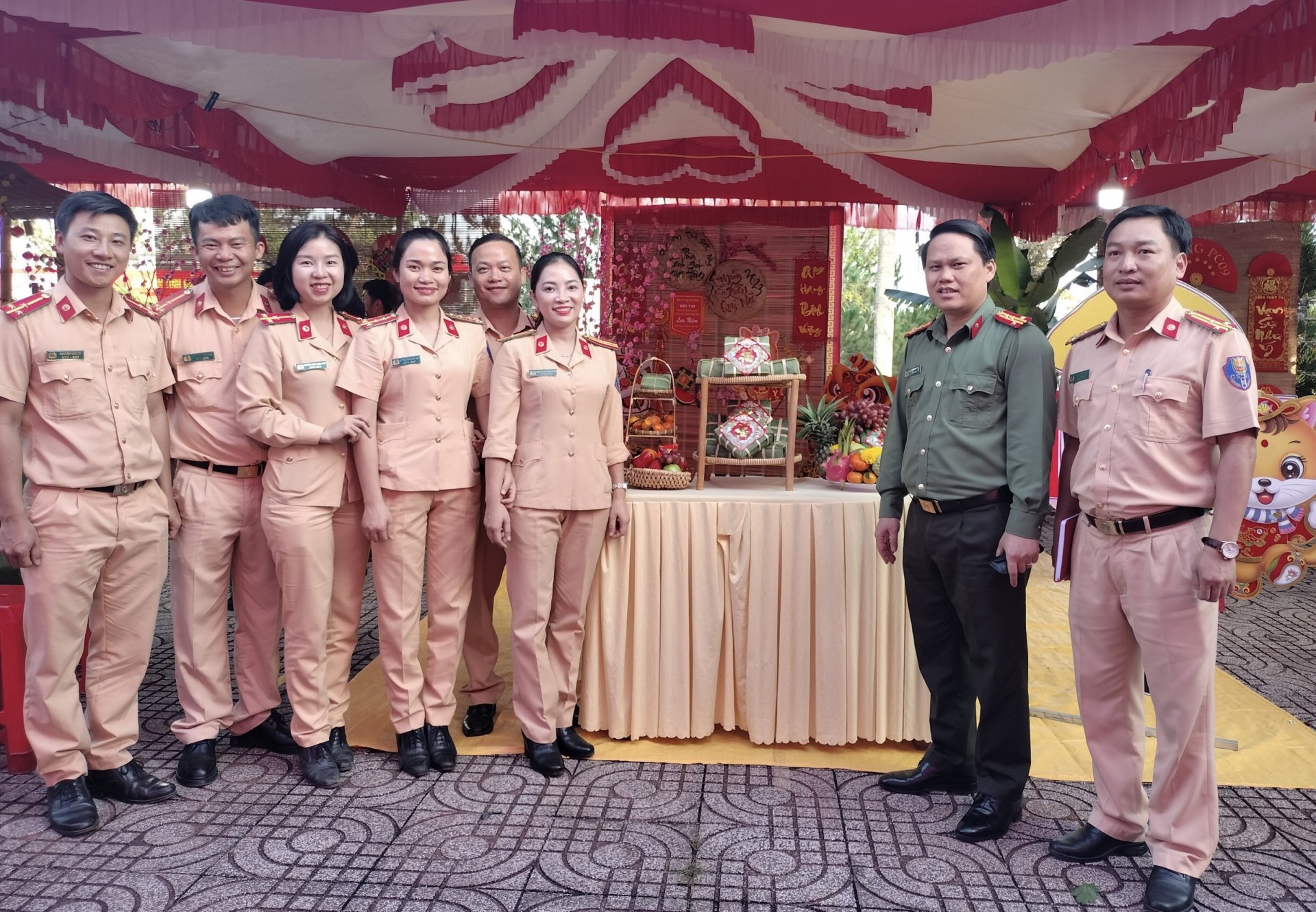 | Lực lượng CSGT tỉnh Đắk Nông trưng bày sản phẩm. |