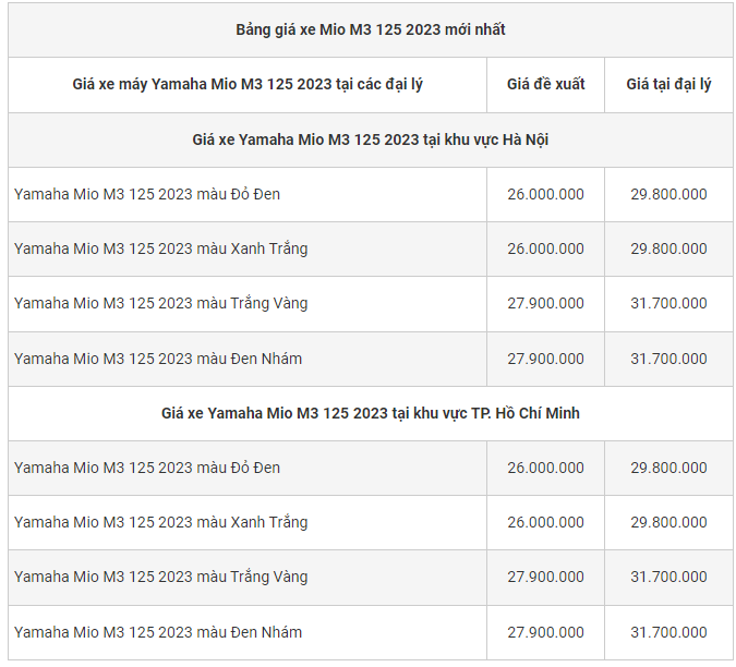 * Lưu ý: Giá trên đã bao gồm phí thuế trước bạ + phí ra biển số + phí bảo hiểm dân sự. Người tiêu dùng nên ra các đại lý gần nhất để có thể biết giá một cách chính xác nhất. Giá trên chỉ mang tính chất tham khảo.