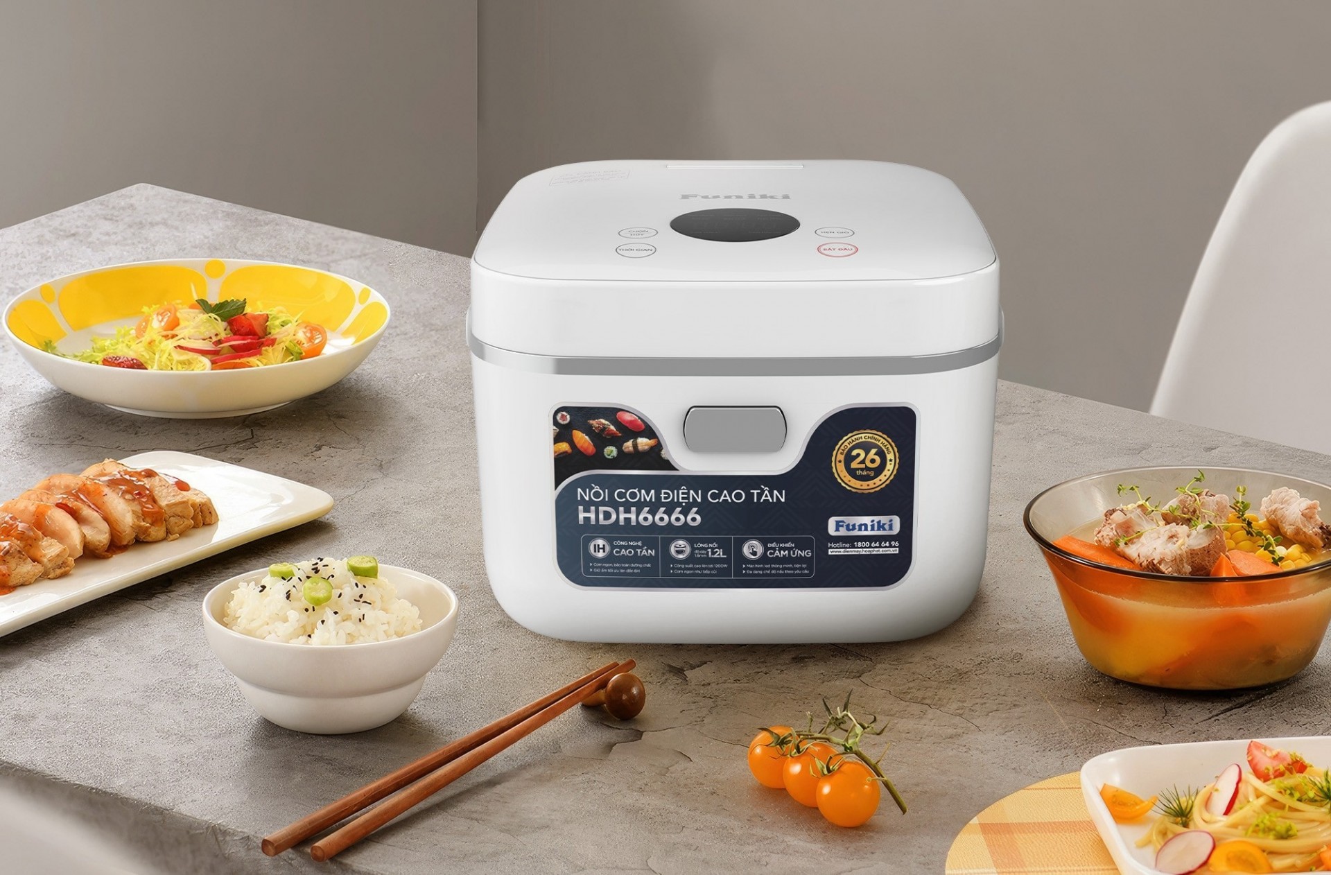 Nồi cơm điện cao tần Funiki cũng ra mắt phiên bản mới đầu tháng 12 năm 2024 và được nhiều khách hàng quan tâm, bởi khả năng giúp cơm chín đều, dẻo thơm, đồng thời giữ trọn hương vị và dưỡng chất nhờ sử dụng công nghệ cao tần IH giúp gia nhiệt đều 360 độ. Sản phẩm có tới 7 chế độ nấu cài đặt sẵn tiện lợi, chức năng hẹn giờ nấu đến 4 tiếng, giữ ấm tự động tối đa lên tới 24 tiếng, cùng thời hạn bảo hành lên tới 26 tháng, đúng với thông điệp từ thương hiệu “bền chuẩn Hòa Phát”.