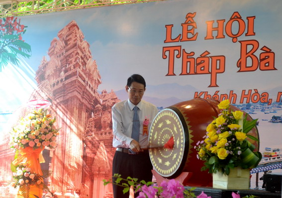| Ông Đinh Văn Thiệu, Phó Chủ tịch UBND tỉnh Khánh Hòa đánh trống khai hội. |