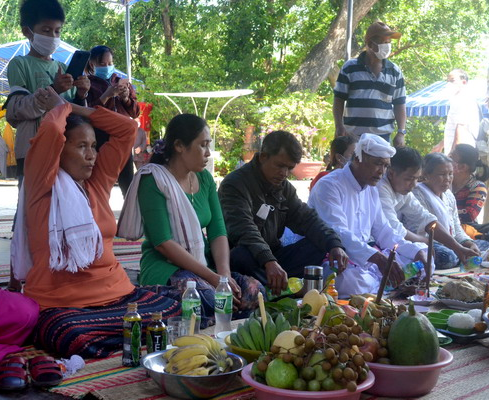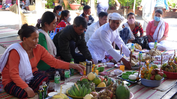 | Người Chăm chuẩn bị lễ và mâm cỗ cúng Mẫu. |
