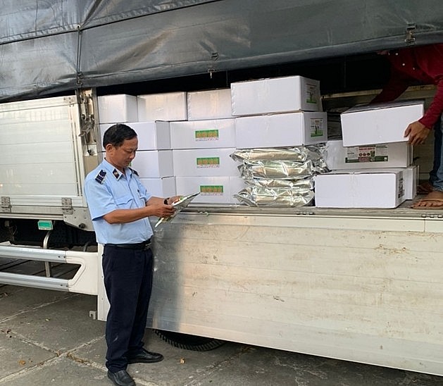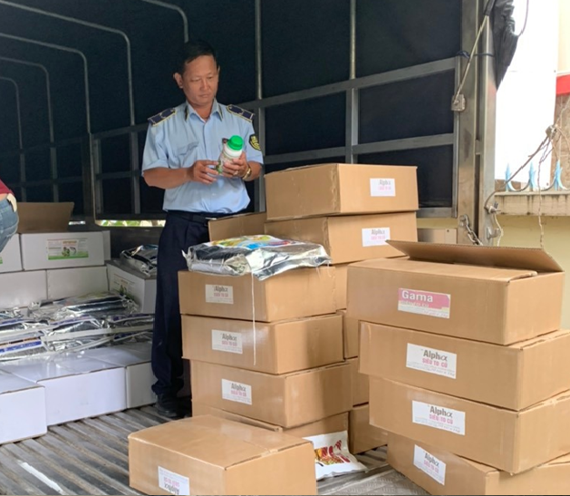 Đội Quản lý thị trường (QLTT) số 1 tỉnh Đồng Tháp tiến hành khám phương tiện vận chuyển 4.500 sản phẩm phân bón các loại trên nhãn hàng hóa ghi không đúng các nội dung bắt buộc hoặc nội dung bắt buộc phải thể hiện theo tính chất hàng hóa theo quy định pháp luật về nhãn hàng hóa.