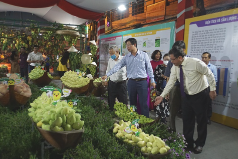 Các đại biểu và người dân, du khách tham quan khu trưng bày, giới thiệu và quảng bá thương hiệu “Xoài Cao Lãnh”.