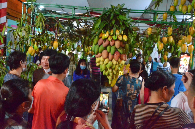 Người dân náo nức tham quan các gian hàng xoài được trưng bày nghệ thuật.