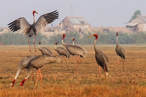 | Sếu đầu đỏ tại Vườn quốc gia Tràm Chim là loài chim nằm trong sách đỏ Việt Nam và sách đỏ Liên minh Quốc tế bảo tồn thiên nhiên và tài nguyên thiên nhiên |