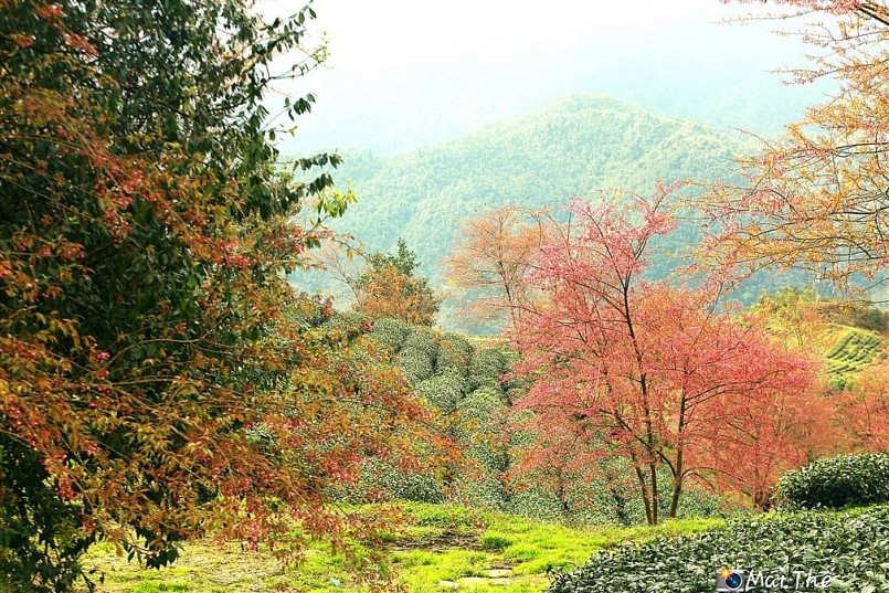 Hoa anh đào nở rộ trên những đồi chè. Hoa đào cổ Sa Pa bật những cánh hồng sớm trên dọc đường Nguyễn Chí Thanh vào khu du lịch Sun World Fansipan Legend. Đông tô những sắc màu đặc trưng của nó lên từng khoảnh khắc Sa Pa, kích thích những bước chân khám phá.