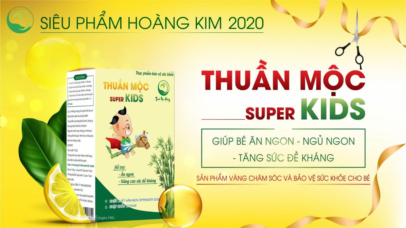 Thấu hiểu được nỗi lo của các bậc phụ huynh, Công Ty TNHH Dược Mỹ Phẩm Thanh Mộc Hương (đơn vị có hơn 5 năm kinh doanh các dòng sản phẩm đông y chăm sóc sức khỏe người Việt), đã nghiên cứu và cho ra đời dòng sản phẩm thực phẩm bảo vệ sức khỏe THUẦN MỘC SUPER KIDS hỗ trợ: Ăn ngon, ngủ ngon, nâng cao sức đề kháng, hạn chế nguy cơ viêm đường hô hấp và tăng hệ vi sinh đường ruột giúp bé tiêu hóa tốt hơn dễ hấp thụ chất dinh dưỡng.