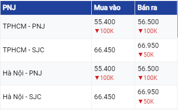 Theo đó giá vàng tại Tập đoàn Doji và hệ thống SJC cùng giữ nguyên ở cả chiều mua vào và bán ra.