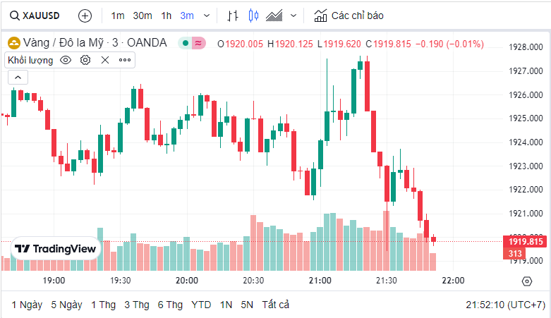 Giá vàng quốc tế (XAU) hôm nay là 1,920.52 USD (cập nhật lúc 21:50:37 09/08/2023).