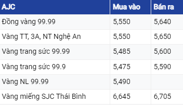 | Giá vàng AJC cập nhật 14/06/2023 lúc 21h30 |