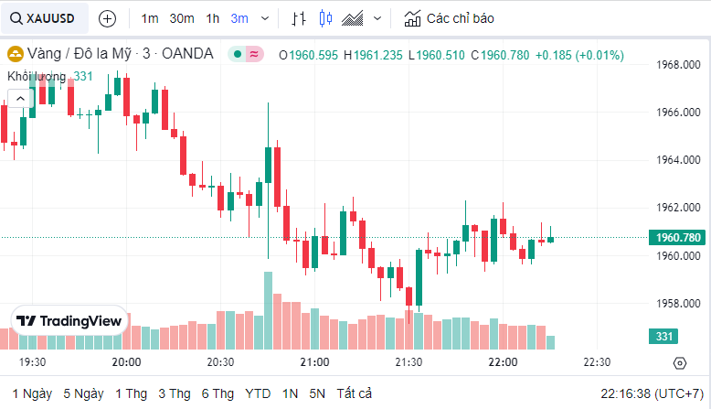Giá vàng quốc tế (XAU) hôm nay là 1,961.07 USD (cập nhật lúc 22:15:44 24/07/2023).