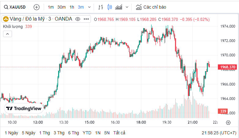 Giá vàng quốc tế (XAU) hôm nay là 1,968.68 USD (cập nhật lúc 21:56:41 26/07/2023).