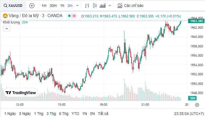 Giá vàng quốc tế (XAU) hôm nay là 1,962.86 USD (cập nhật lúc 23:33:47 28/07/2023).