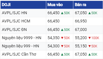 Qua khảo sát cho thấy, giá mua vàng SJC tại các hệ thống cửa hàng đang giao dịch trong khoảng 66,50 triệu đồng/lượng. Còn giá bán dao động trong phạm vi 67,10 - 67,12 triệu đồng/lượng.