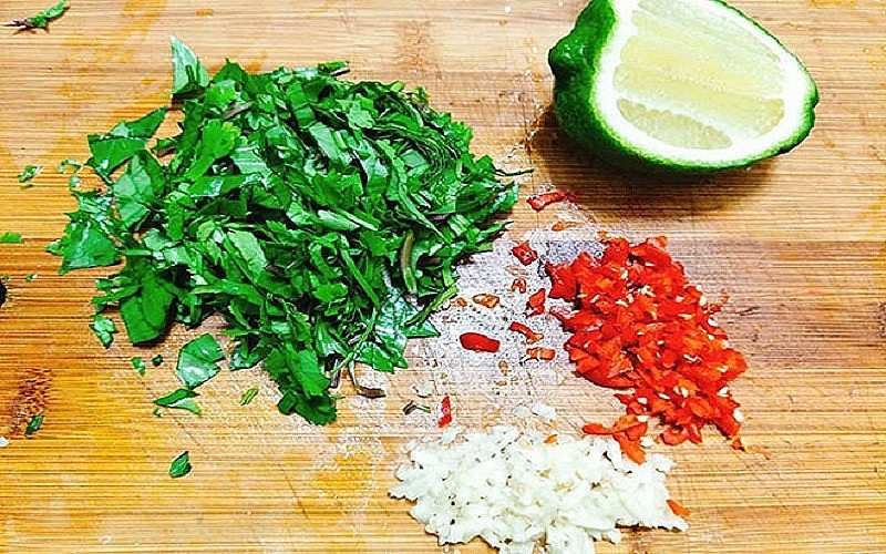 Các loại rau thơm thì nhặt lá sau đó rửa sạch rồi thái nhỏ.
