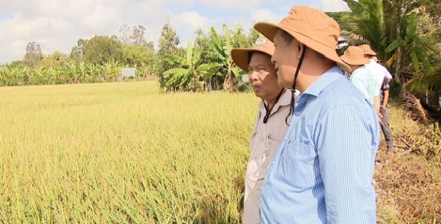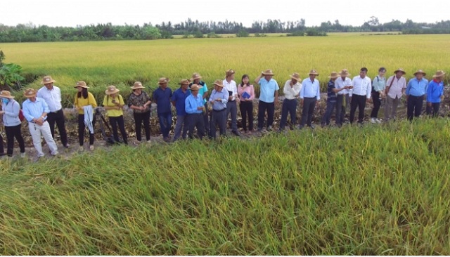 Đại biểu tham quan mô hình sản xuất lúa theo hướng hữu cơ ở Sóc Trăng. Ảnh: ST