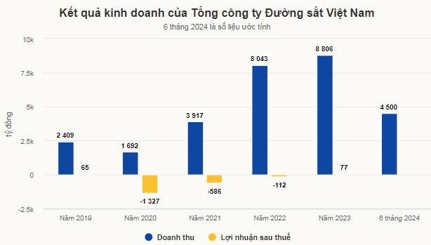 Tổng công ty Đường sắt Việt Nam (VNR) báo doanh thu 6 tháng đạt trên 4.500 tỷ đồng, tăng hơn 10% so với cùng kỳ 2023. Như vậy, trung bình mỗi ngày, công ty ghi nhận hơn 24,7 tỷ đồng.