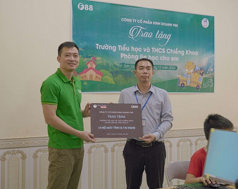 Ngày 18/12, Công ty Cổ phần Kinh doanh F88 đã đến thăm và trao tặng phòng tin học và hơn 120 áo ấm mùa đông đến tận tay các bạn học sinh của trường Tiểu học và Trung học cơ sở Chiềng Khoa thuộc xã Chiềng Khoa, huyện Vân Hồ, tỉnh Sơn La.