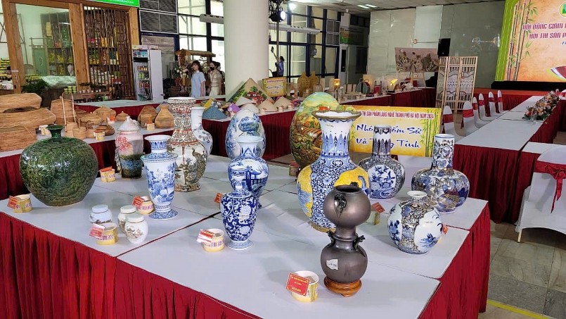 | Các sản phẩm gốm sứ tham dự Hội thi sản phẩm làng nghề thành phố Hà Nội năm 2024. |
