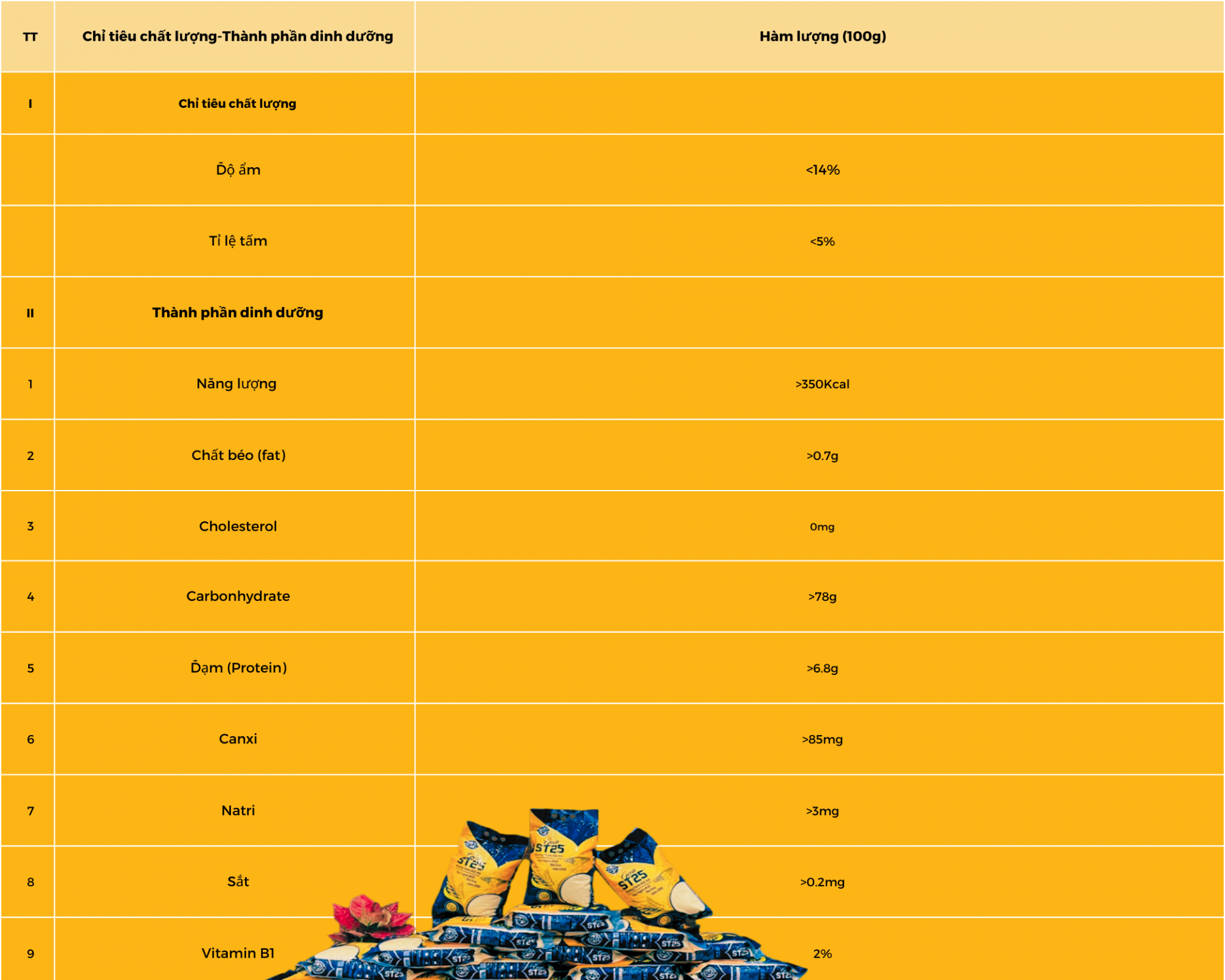 Thành phần dinh dưỡng của gạo ST25 nhãn hiệu AGH vượt trội