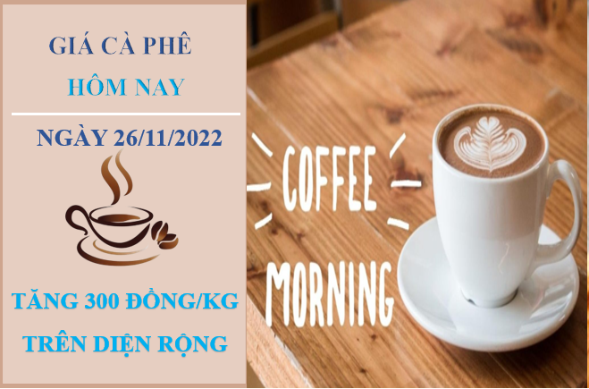 Giá cà phê hôm nay 26/11/2022, ghi nhận thị trường trong nước tăng trung bình 300 đồng/kg tại các địa phương so với cùng thời điểm sáng hôm qua. Hiện giá cà phê đang dao động trong khoảng 40.000 - 40.500 đồng/kg.