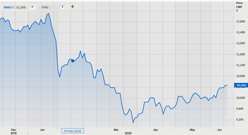 Kể từ đầu tháng 4/2020 tới trung tuần tháng 6/2020, giá cao su trên sàn Thượng Hải (Trung Quốc) tăng 12%, hiện đạt khoảng 10.300 CNY/tấn. Giá cao su hàng thực ở Châu Á và giá trên sàn Tokyo (Nhật Bản) cũng đang trong xu hướng tích cực.