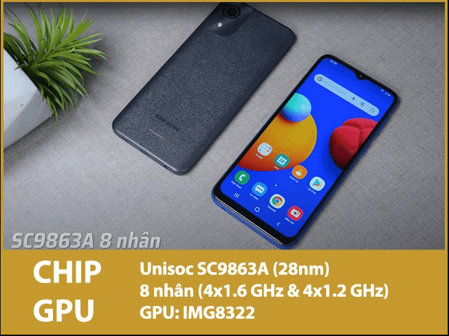 Samsung Galaxy A03 Core sử dụng chíp Unisoc SC9863A và GPU mạnh mẽ, giúp xử lý đồ họa và chơi game mượt mà. Người dùng có thể đánh giá các trò chơi yêu thích mà không gặp tình trạng lag hay giật., cho phép điện thoại xử lý tác vụ hàng ngày một cách mượt mà và đáng tin cậy.