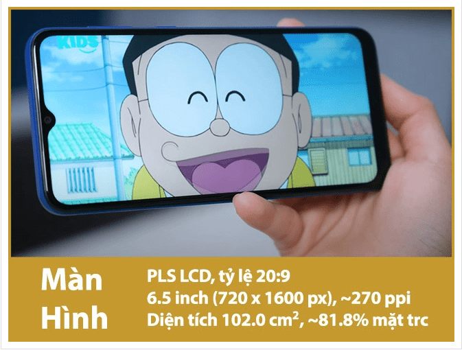 Màn hình 6.5 inch của Samsung Galaxy A03 Core mang đến trải nghiệm xem phim và chơi game tuyệt vời. Độ phân giải HD+ cùng Tỷ lệ khung hình 20:9 giúp hiển thị hình ảnh sắc nét và rõ ràng.