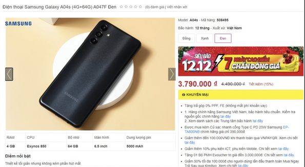 Giá Galaxy A04s mới nhất ngày 11/12/2022: Rẻ chưa từng có