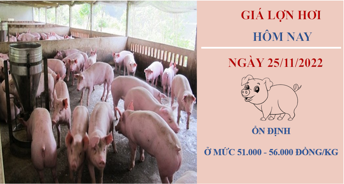 Giá heo hơi hôm nay 25/11/2022, không ghi nhận nhiều biến động tại các địa phương so với cùng thời điểm hôm qua. Hiện tại, giá khảo sát ở các tỉnh thành dao động trong khoảng 51.000 - 56.000 đồng/kg.