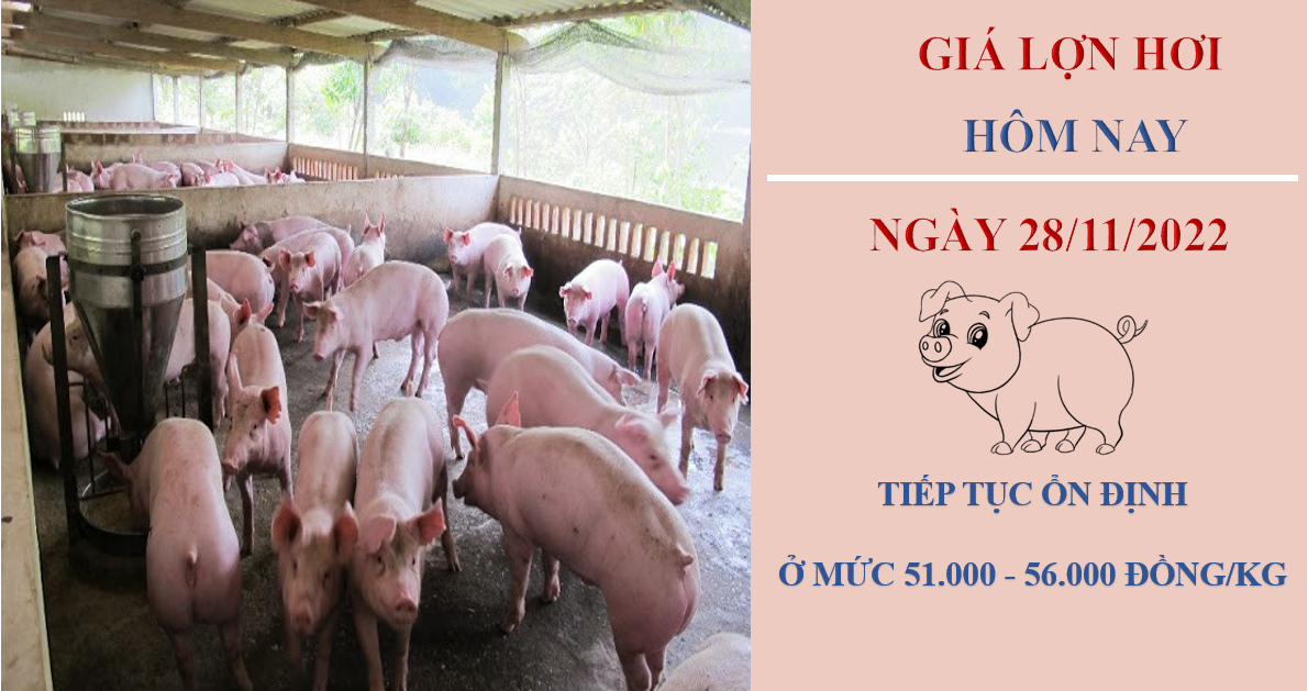 Giá heo hơi hôm nay 28/11/2022, đồng loạt đi ngang tại các địa phương so với cùng thời điểm hôm qua. Hiện tại, giá khảo sát ở các tỉnh thành dao động trong khoảng 51.000 - 56.000 đồng/kg.