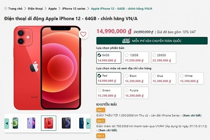 iPhone 12 64GB có giá 14.990.000 đồng
