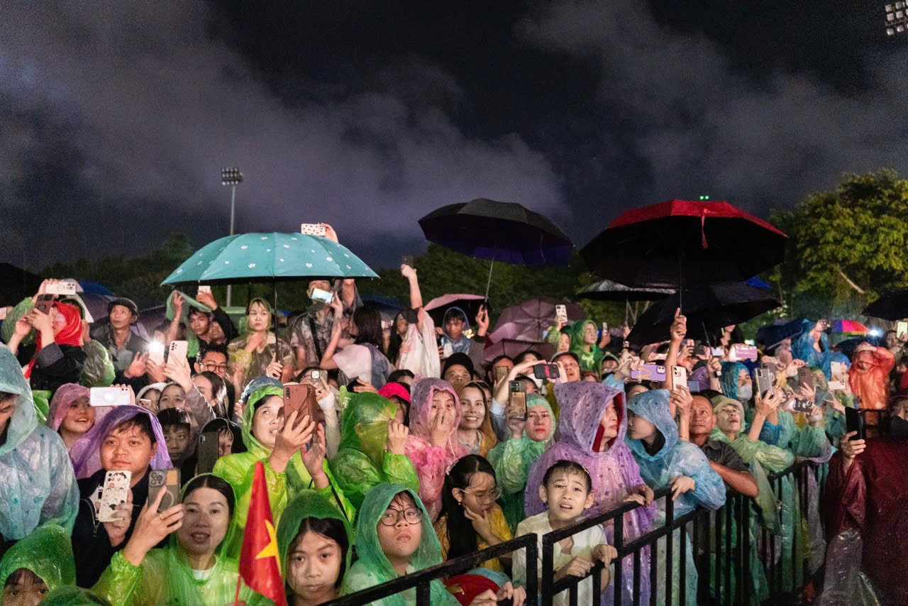 Ngay sau phần nghệ thuật, hàng vạn người dân và du khách đồng loạt hướng ánh mắt về bầu trời thành phố. Trong không gian rộn rã tiếng cười và sắc cờ đỏ sao vàng tung bay, khoảnh khắc chờ đợi như được nhân lên gấp bội.