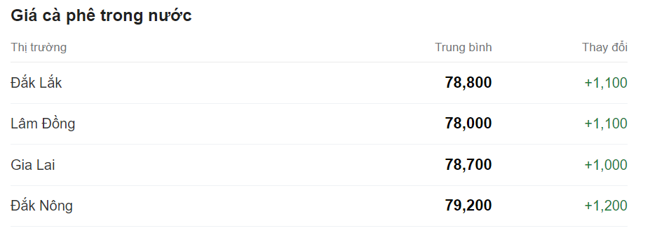 Theo đó, tỉnh Lâm Đồng có giá thấp nhất là 78.000 đồng/kg. Kế đến là tỉnh Gia Lai với 78.700 đồng/kg.