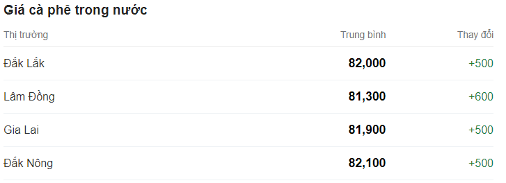 Trên thị trường nội địa, ghi nhận trong hôm qua (18/2), giá cà phê nhân xô tại Tây Nguyên và các tỉnh Nam Bộ tăng 900 đồng/kg. Theo đó, cà phê trong nước được thu mua quanh mức 80.300 - 81.400 đồng/kg.