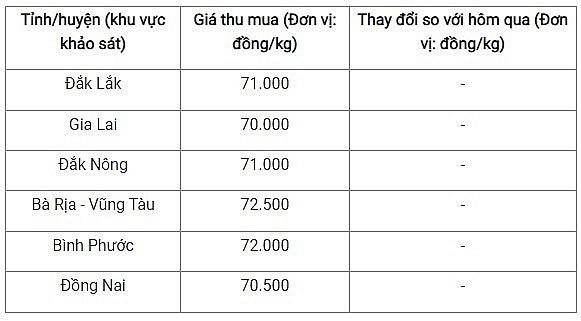 Hai tỉnh Đắk Lắk và Đắk Nông đang có cùng mức giá thu mua là 71.000 đồng/kg.