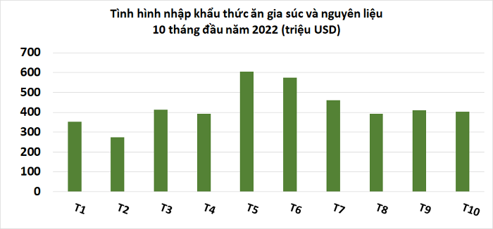 Trong đó, kim ngạch nhập khẩu thức ăn gia súc và nguyên liệu đạt hơn 4,5 tỷ USD, tăng 9% so với cùng kỳ năm 2021.