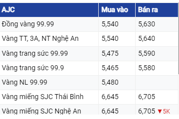 | Giá vàng AJC cập nhật 10/06/2023 lúc 22h30 |