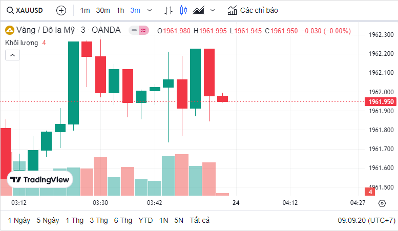Giá vàng quốc tế (XAU) hôm nay là 1,961.85 USD (cập nhật lúc 09:07:46 22/07/2023).