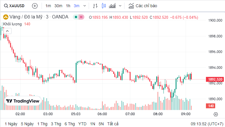 Giá vàng quốc tế (XAU) hôm nay là 1,892.55 USD (cập nhật lúc 09:13:02 17/08/2023).