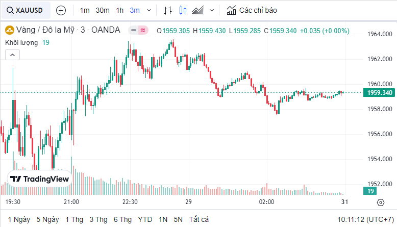 Giá vàng quốc tế (XAU) hôm nay là 1,959.25 USD (cập nhật lúc 10:10:02 30/07/2023).