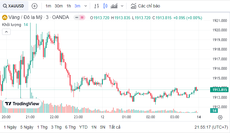 Giá vàng quốc tế (XAU) hôm nay là 1,913.83 USD (cập nhật lúc 21:53:36 12/08/2023).