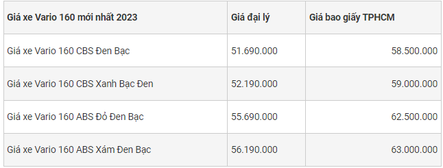 Vario 160 hiện đã và đang là mẫu xe tay ga tiếp tục gây chú ý tại Việt Nam, nhắm đến khách hàng tiềm năng là mọi đối tượng khách hàng, từ thanh niên trẻ tuổi đến người trung niên. Mẫu xe Honda Vario 160 2023 phiên bản mới nhất hiện nay với 4 màu với mức giá bán cao hơn Vario 150 đời cũ, đây là phiên bản đã ngưng sản xuất.
