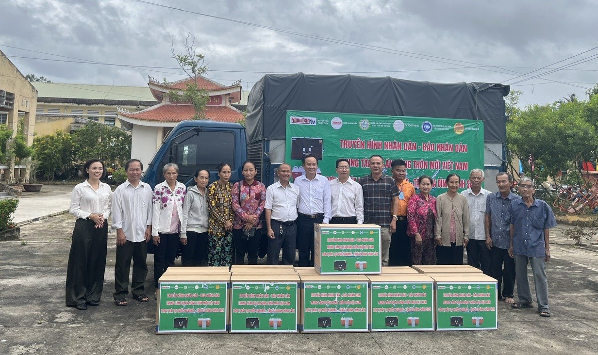 Đại diện Trung tâm phát triển dự án nông thôn mới Việt Nam – Chi nhánh Công ty TNHH Nanomic trao máy lọc nước cho một số địa phương. |