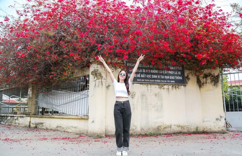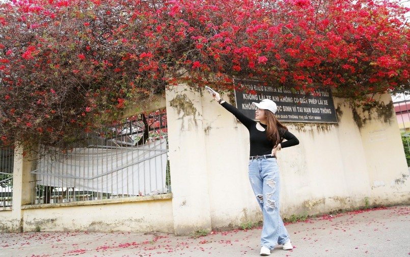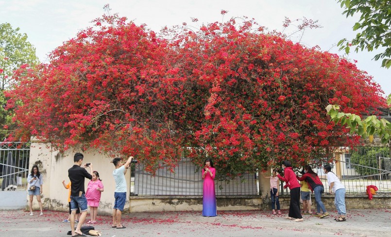 Đặc điểm của hoa giấy là ưa sáng, nên sau tết nguyên đán, hoa bắt đầu nở rộ, đỏ rực cả góc trời. Nơi đây đang là điểm “check in” được nhiều người tìm đến.