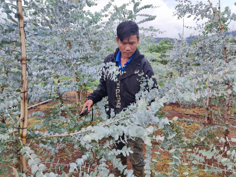 Loại cây này còn có tên gọi là khuynh diệp hoặc bạch đàn guinii, có nguồn gốc từ châu Úc, được trồng để sản xuất tinh dầu, cắm hoa trang trí. Ở nước ta, ngoài tỉnh Lâm Đồng thì có mấy tỉnh phía Bắc đã trồng. Nhiều người còn dùng để nấu nước xông khi cảm hay bỏ xe ô tô để khử mùi. Tối đó, tôi về nhà, mở mạng tìm hiểu giống cây này và mạnh dạn đặt mua giống về trồng”.