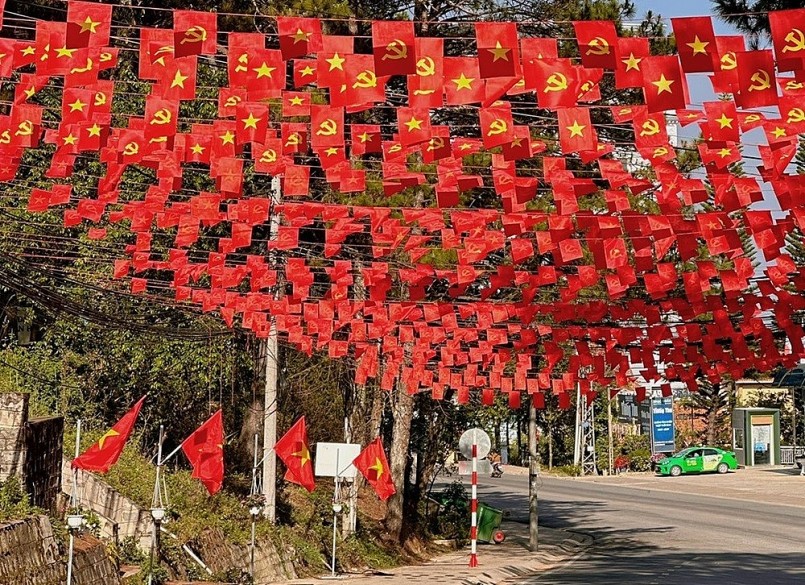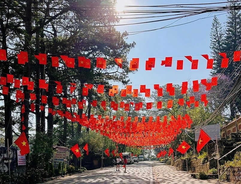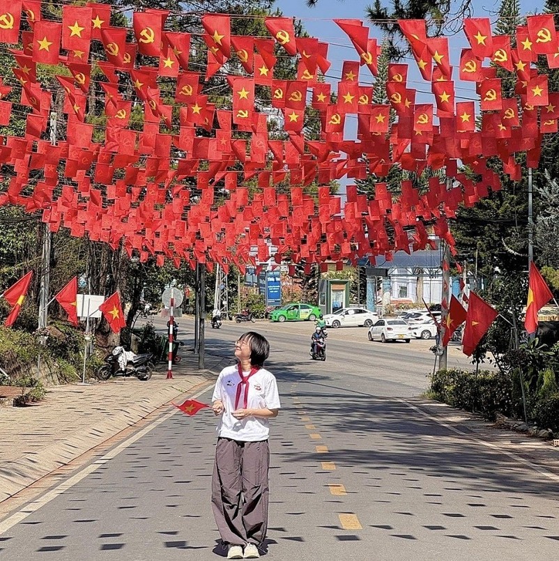 Những ngày qua, trên mạng xã hội, hình ảnh nhiều cung đường tại Đà Lạt (tỉnh Lâm Đồng) rực rỡ cờ đỏ sao vàng, cờ Đảng khiến người dân địa phương và khách du lịch, đặc biệt là các bạn trẻ không khỏi trầm trồ.