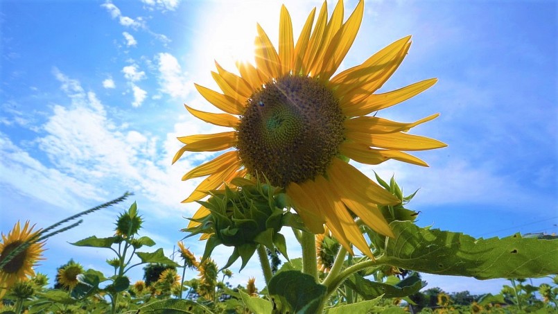 | Những bông hoa hướng dương vươn mình dưới mặt trời, tỏa sắc một vùng trời xứ trà |