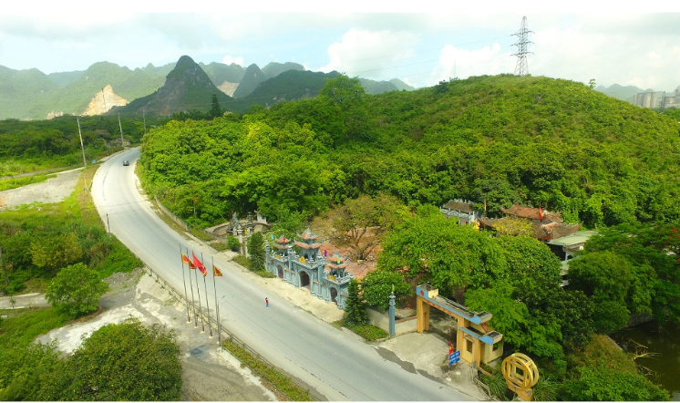 | Đường vào căn cứ địa Lạt Sơn và toàn cảnh đền thờ nữ tướng Lê Chân, xã Thanh Sơn, huyện Kim Bảng |