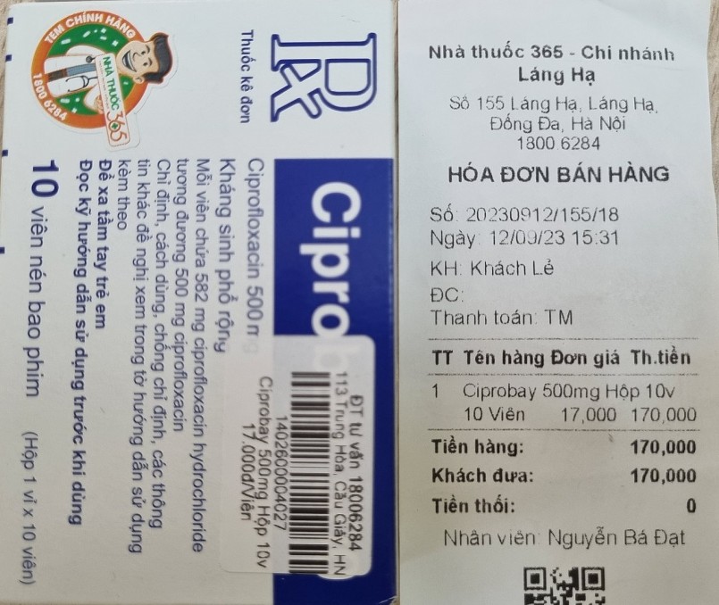 Trước đó, ngày 12/09/2023 phóng viên Tạp chí Thương hiệu & Sản phẩm tìm hiểu tại Nhà thuốc 365 trực thuộc Công ty Cổ phần Dược phẩm Sun Pharma tại địa chỉ 155 Láng Hạ, Quận Đống Đa, TP Hà Nội. Tại đây phóng viên đặt mua thuốc Ciprobay 500 loại kháng sinh phổ rộng bao bì thể hiện rõ “thuốc kê đơn”, mặc dù không có đơn thuốc của bác sĩ nhưng nhân viên tại Nhà thuốc vẫn bán cho khách hàng. Phóng viên có trao đổi việc mua thuốc mà không có đơn của bác sĩ thì nhân viên tại đây chỉ ậm ờ cho qua. Phóng viên Tạp chí Thương hiệu & Sản phẩm đã cung cấp thông tin và phối hợp cùng Sở Y tế để xử lý…/